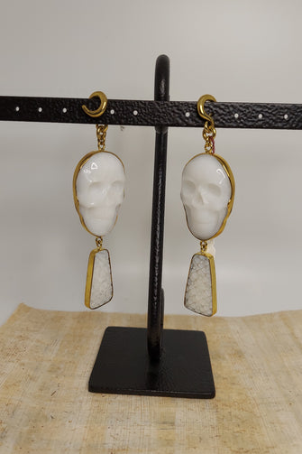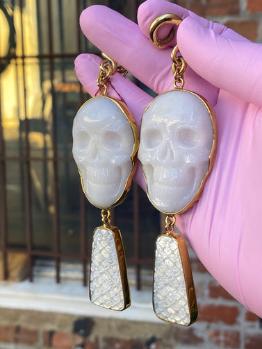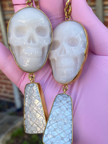 Cloudy Quartz Skull w/ carved Mother of Pearl