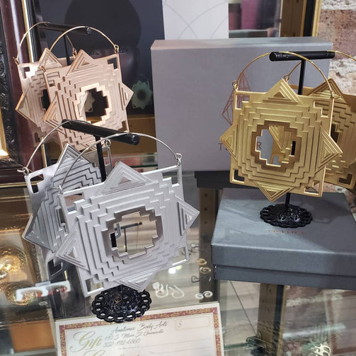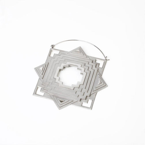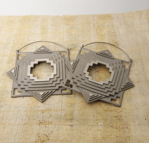 This powerful earring was inspired by pyramids of the ancient city of Teotihuacan. The perfect stepped relief work adds depth and dimension that features a contrasting sandblasted matte finish with high polish accents.